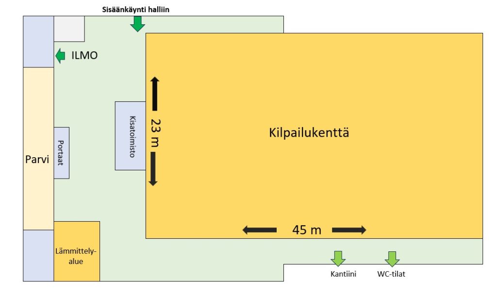 Kisat pidetään VAU:n hallilla, osoitteessa Lasitie 20, Lahti