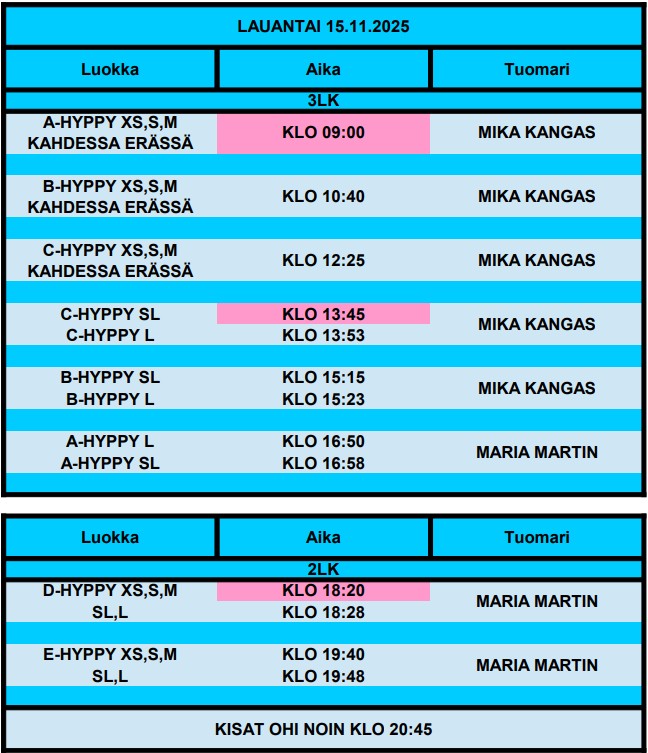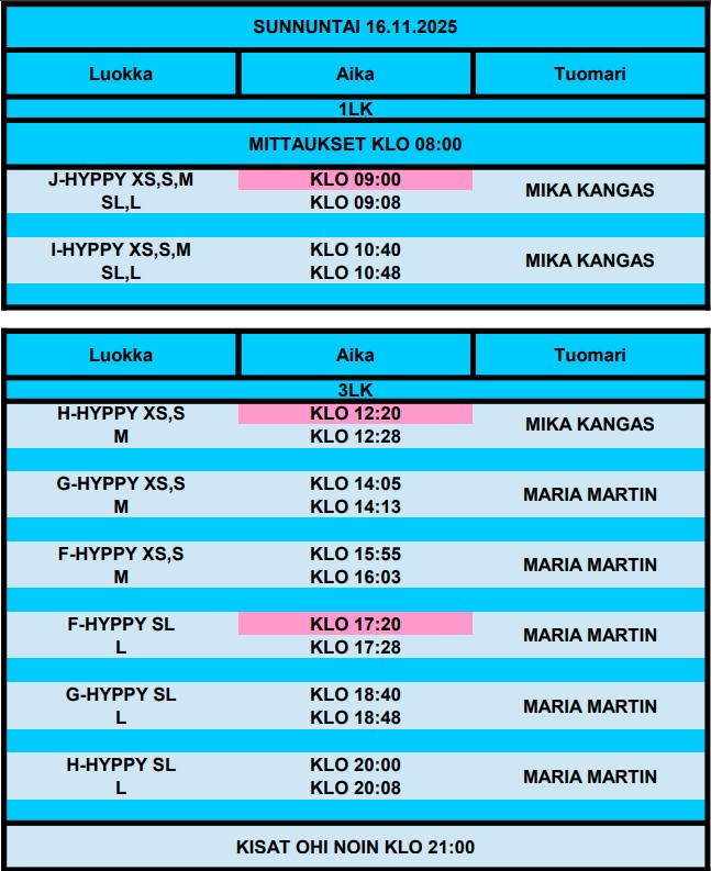 HUOM! Kisapaikalla mitataan vain kilpailuun osallistuvia ja mittaukseen ennakkoon ilmoitettuja koiria!